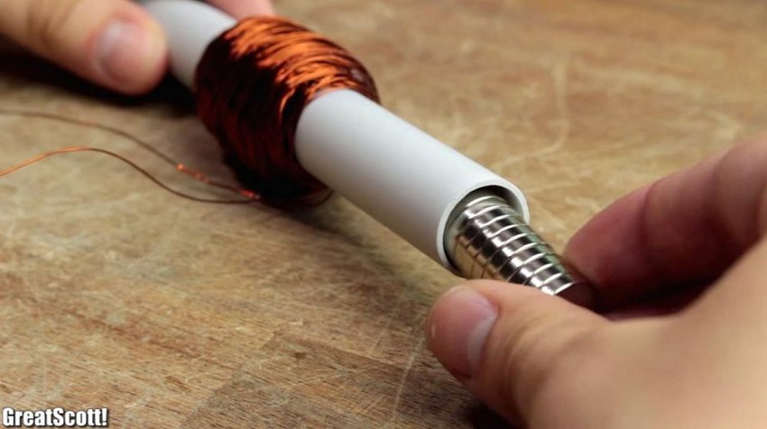 Подвижный магнитный сердечник катушки может быть, как цельным, так и собранным по частям. Неодимовые магниты подбираются по внутреннему диаметру ПВХ трубки. Опытным путем набирается необходимая длина магнитного стержня, через колебания которого и будет создаваться электрический ток.