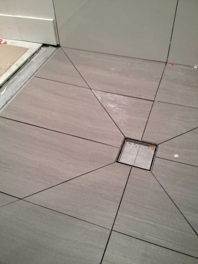 Обычно напольная плитка укладывается от центра к стенам, и работу начинают от стены противоположной от двери. Кафель кладут горизонтальными рядами снизу вверх.