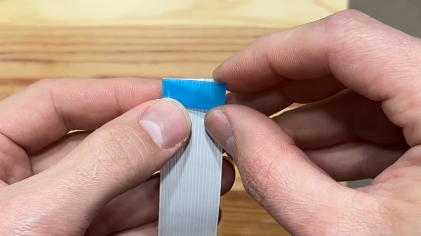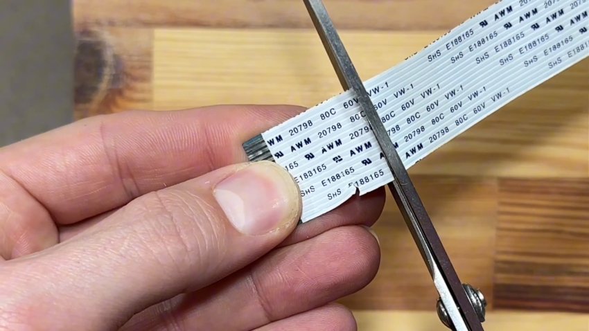 Да, не забудьте проверить, хватит ли такой длины шлейфа. Если все нормально, то продолжаем. Аккуратно отклеиваем синюю подложку с отрезанного конца - она еще нам пригодится.