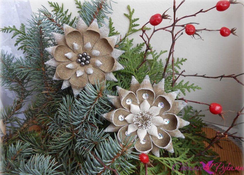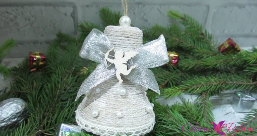 Скоро Новый год и поделки на елку будут очень актуальны, смотрите, какие колокольчики можно сделать из мешковины: