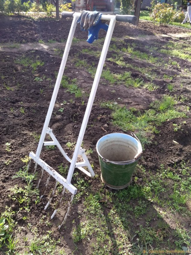 После сбора урожая и уборки ботвы и растительных остатков землю на грядках перекапывают и разравнивают граблями. Отказаться от вспашки можно на окультуренных и структурированных почвах, которые достаточно разрыхлить граблями.