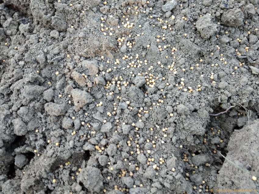 По выровненной поверхности участка равномерно рассыпают семена горчицы или любого другого выбранного сидерата, вручную или с помощью сеялки. Норма расхода посадочного материала – 0,2 – 0,3 кг на каждую сотку.