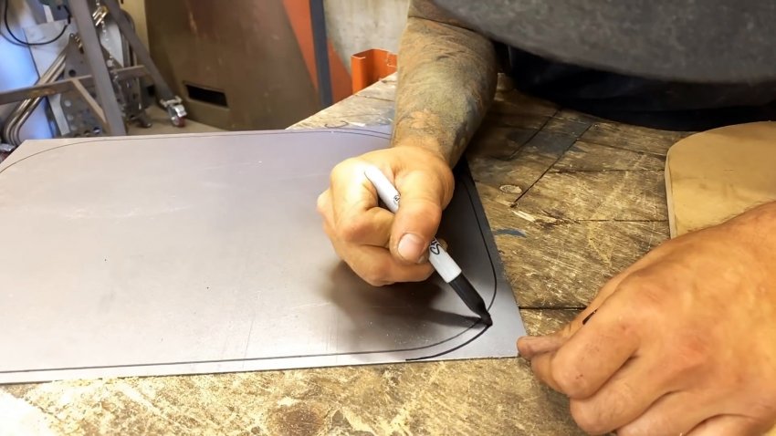 Из листового металла вырезается заготовка панели. Она делается немного большего размера.