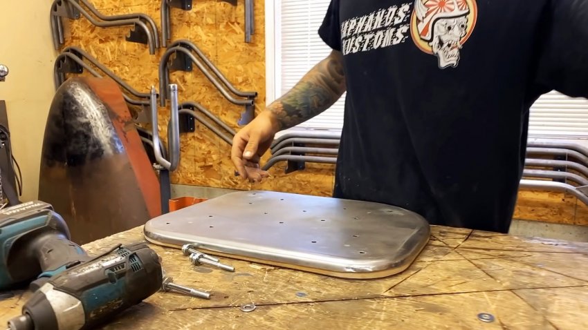 Сделанная таким образом панель в дальнейшем немного шлифуется, чтобы убрать следы от вмятин. Также их можно зашпаклевать, и затем закрасить. Если панель должна быть сплошной без перфорации, то отверстия завариваются.