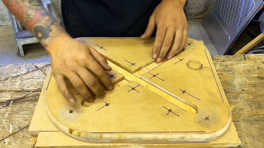 Первым делом нужно изготовить из бумаги шаблон будущей детали. Из МДФ по шаблону выпиливается половинка формы. Ее ответная часть должна получиться меньшей, чтобы не мешать работе молотком.