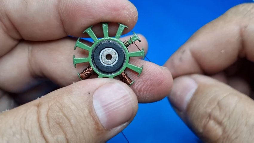 Из вскрытого моторчика вынимается сердечник с обмоткой. После этого нужно удалить намотанную на него проволоку. Она больше не потребуется, поэтому особая аккуратность не нужна.