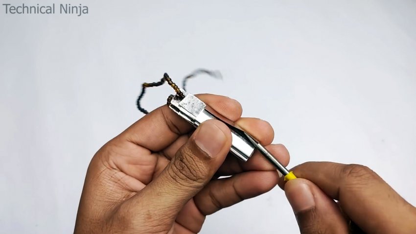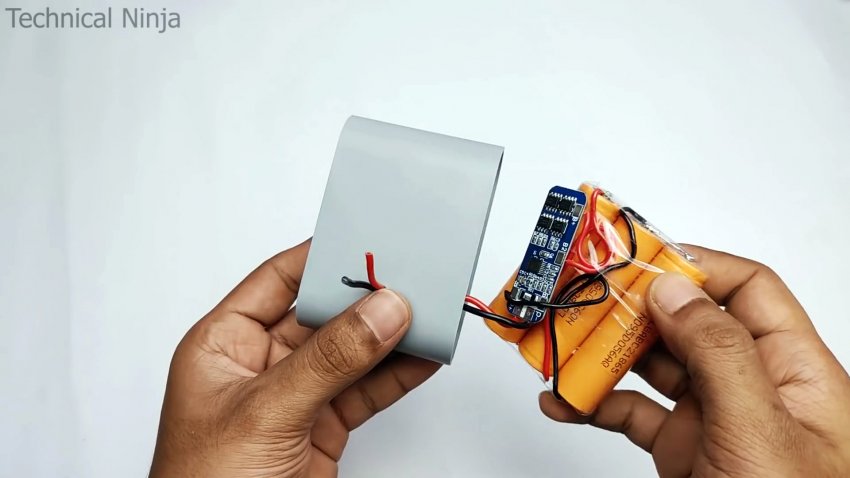 Теперь необходимо сделать корпус батареи. Для этого разогревается отрезок пластиковой трубы, и растягивается до застывания пластика. В итоге в полученный вытянутый корпус помещается модуль с батареей, подробнее можно прочитать тут - https://sdelaysam-svoimirukami.ru/7988-kak-sdelat-karmannyj-generator-dlja-zarjadki-telefona-kotoryj-vsegda-gotov-k-rabote.html