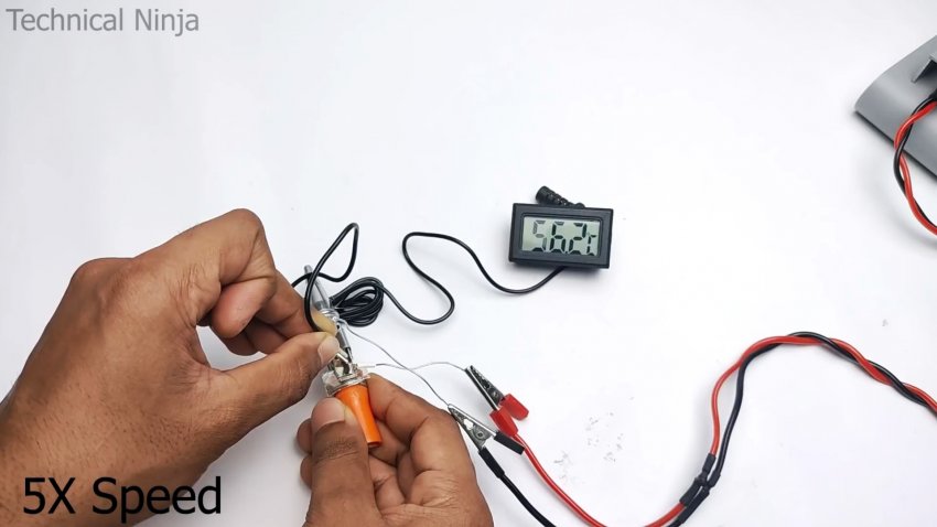 Новый доработанный нагреватель устанавливается на камеру, и фиксируется штатной скобой. Сразу же стоит подключить к спирали 12В, чтобы убедиться, что все работает как следует.