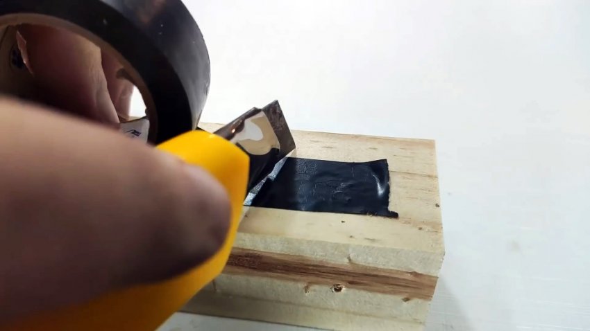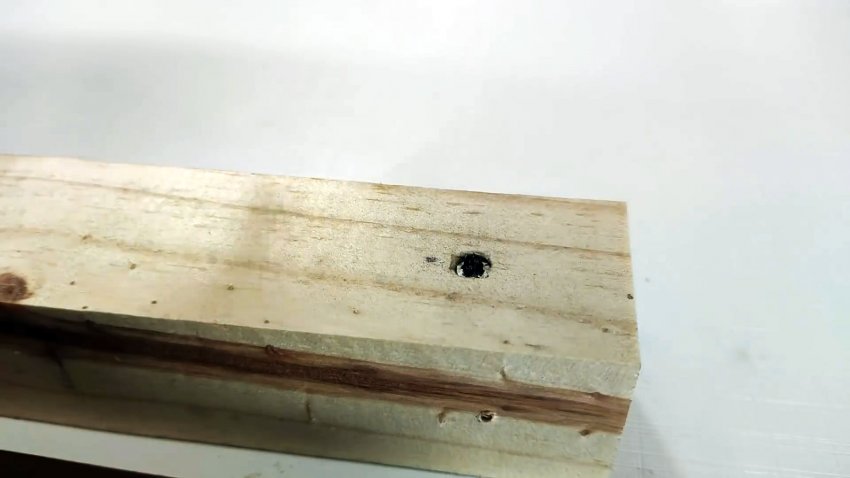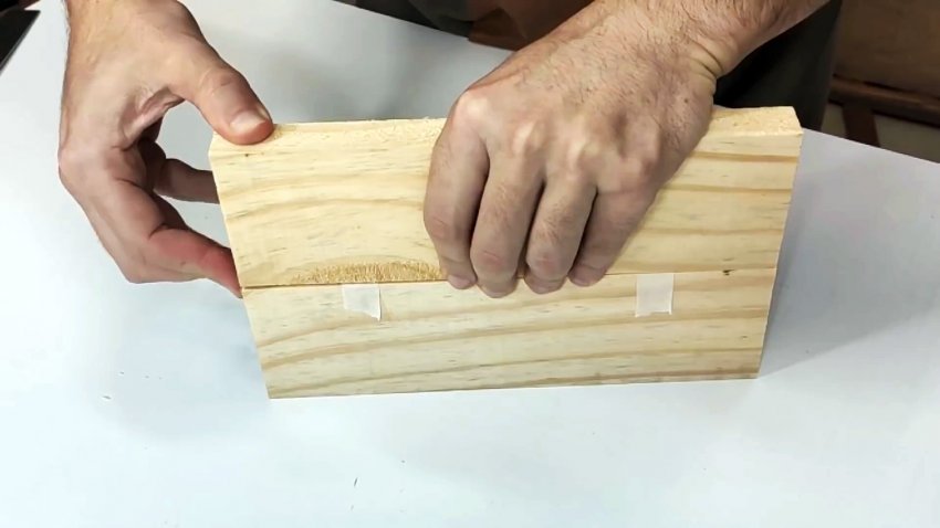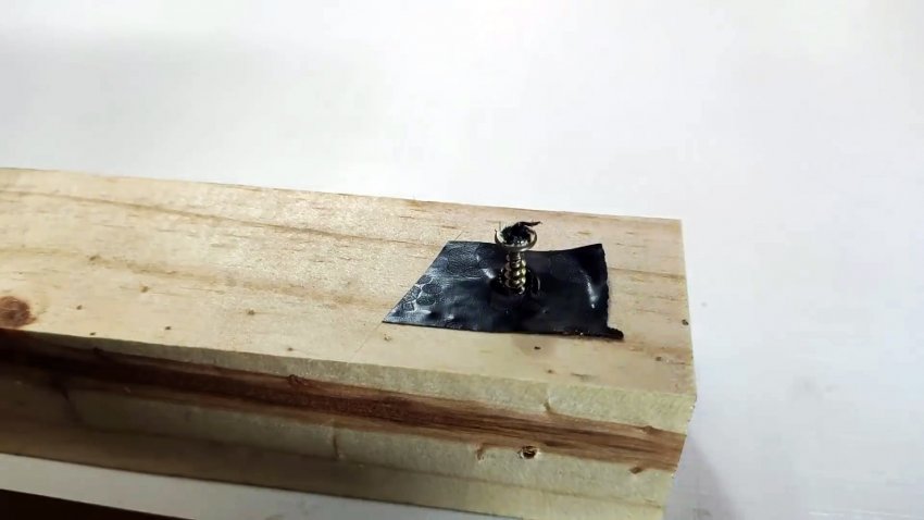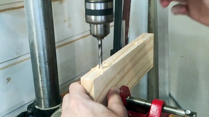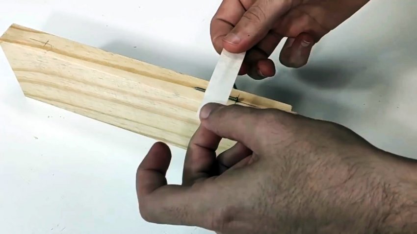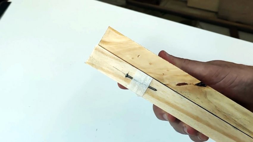 Просто приложите и приклейте на одну из деталей маленькие гвозди малярной лентой. Их шляпки должна оказаться в точках сверления. Затем сверху прикладывается вторая деталь, выравнивается и сильно прижимается.