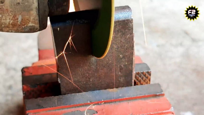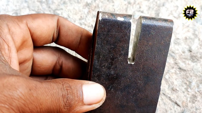 Полученная заготовка приваривается плашмя на рельс так, чтобы пропил остался открытым. Вместо рельса можно применять наковальню, или прикрутить деталь к большой тяжелой деревянной колоде.