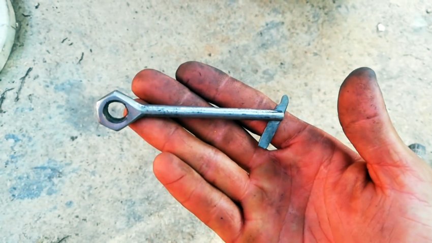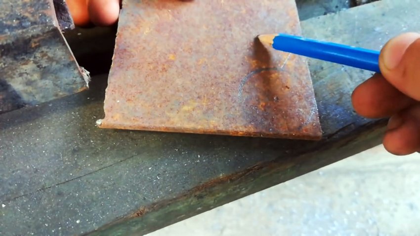Выполняем заготовку из стального уголка с отверстием в одной полке, несколько смещенного относительно центра в продольном направлении.