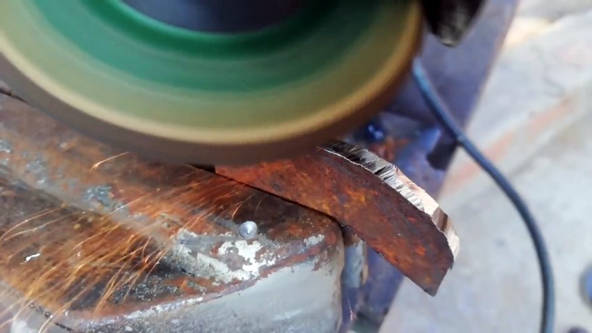 Выполняем из уголка меньшего размера деталь с удаленной на 1/3 полкой и с отверстием в другой напротив удаленной части полки. Все углы детали скругляем.