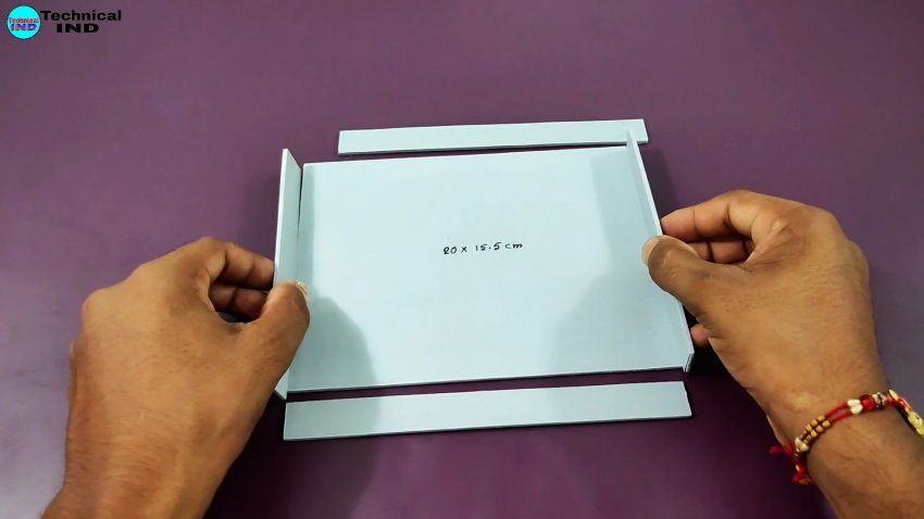 Далее вырезаются заготовка 14х8 см. К ней приклеивается 3 бортика шириной по 5 см. Эта деталь приклеивается на торец трубы. Ее нужно выровнять по краю, а не по центру.