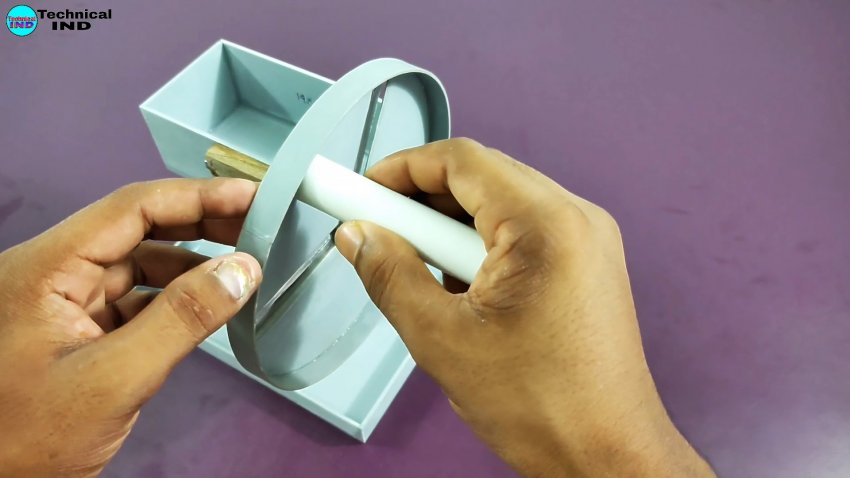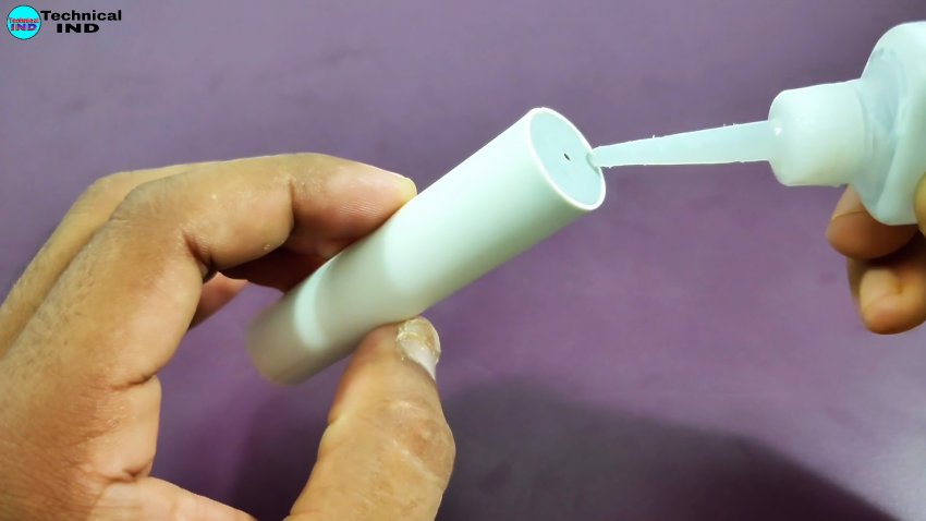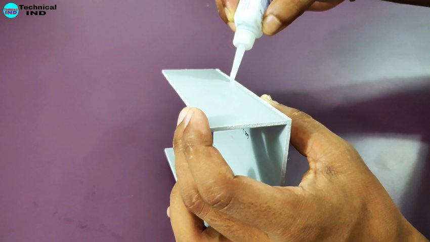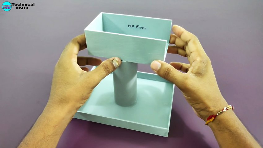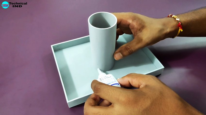В центр короба вклеивается отрезок трубы диаметром 50 мм длиной 115 мм. Чтобы она лучше держалась, пластик лучше предварительно затереть шкуркой.