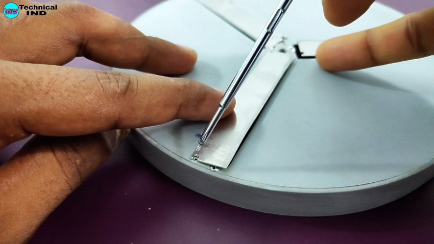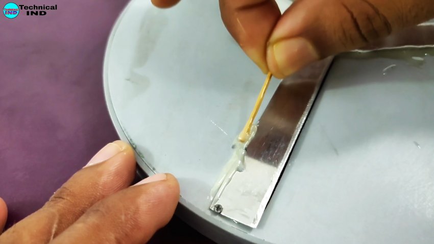 От ножей отрезаются лезвия, и на них делаются монтажные насечки по краям. Их нужно прикрутить на диск с обратной от бортика стороны. Для этого используются миниатюрные винтики. Чтобы создать необходимый угол атаки лезвия, на диск предварительно вкручиваются винты. Ножи будут упираться в них, тем самым их можно закрепить под углом. Регулируя высоту выступа винтов, можно настроить этот вылет. Затем лезвия дополнительно приклеиваются.