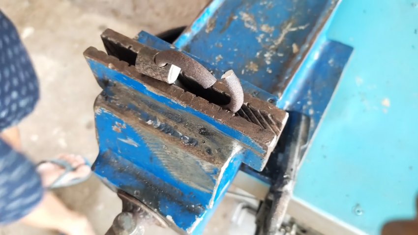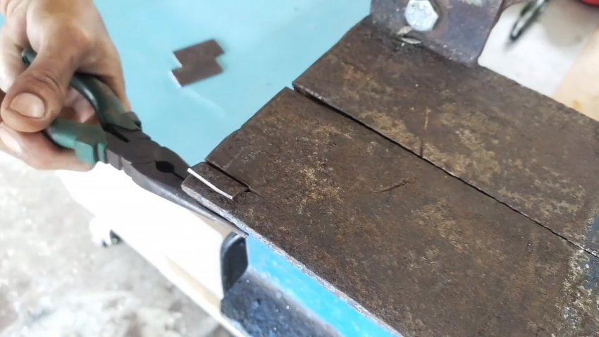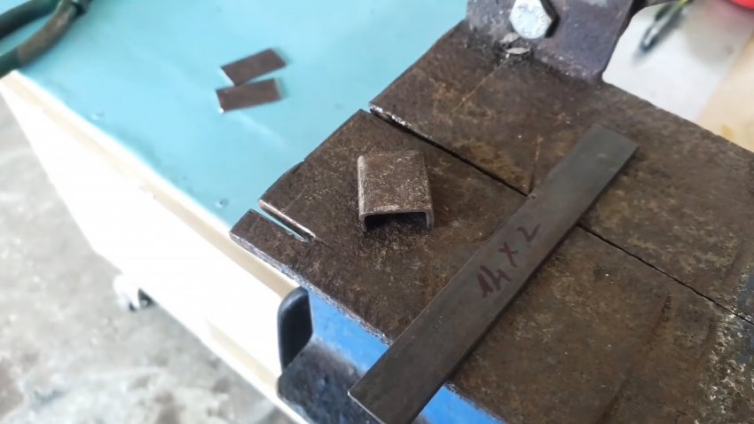 Согнутые края трех пластин укорачиваем до толщины полосы 140×20 мм и получаем своего рода скобы.
