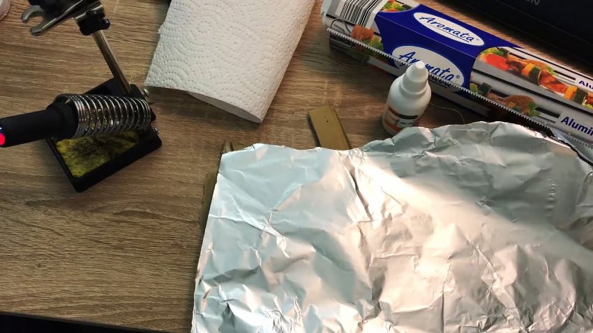 Кто имеет даже небольшой опыт пайки знает, что припой плохо пристает к алюминию. Этот металл мгновенно окисляется, и образованная пленка мешает пайке, поэтому ее нужно буквально соскребать, не допуская доступ воздуха к защищенному участку. Когда же необходимо спаять провод с тонкой фольгой, рвущейся при малейшем механическом трении, действовать нужно по-другому.