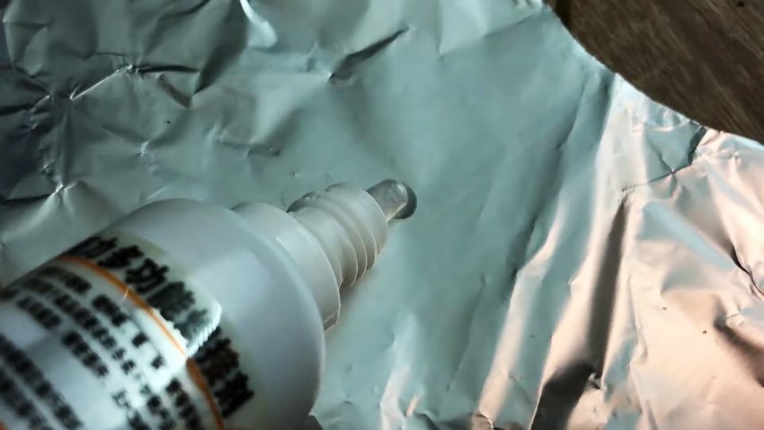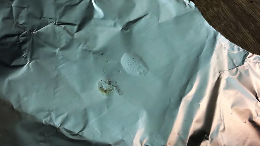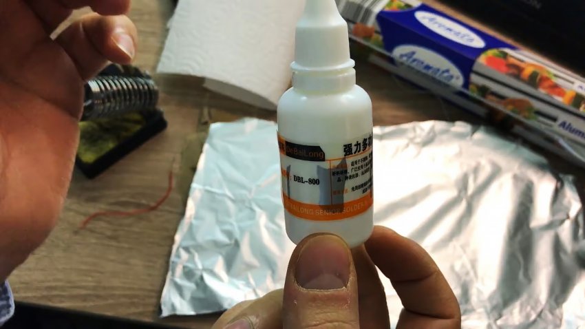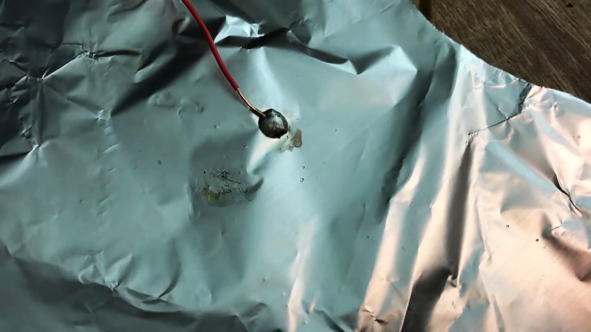 На алюминиевую фольгу в месте пайки наливается капля флюса.