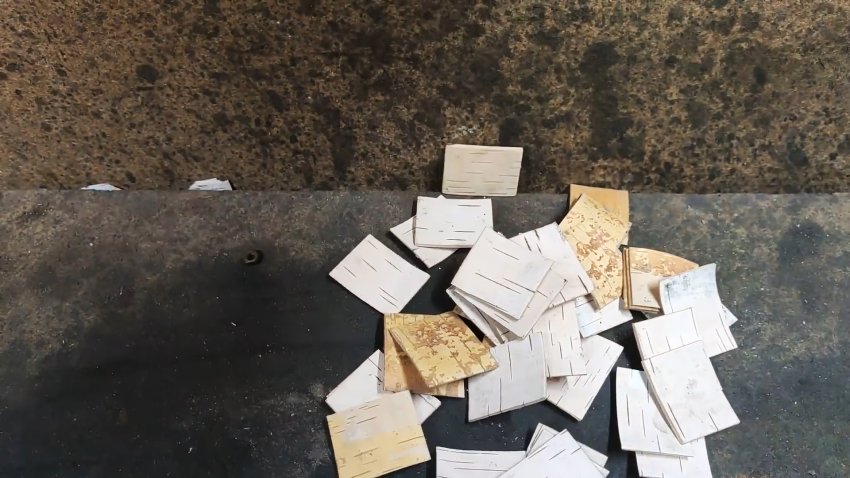 Высушенную бересту необходимо нарезать на небольшие прямоугольники, из которых при складывании слоями и получится рукоять.