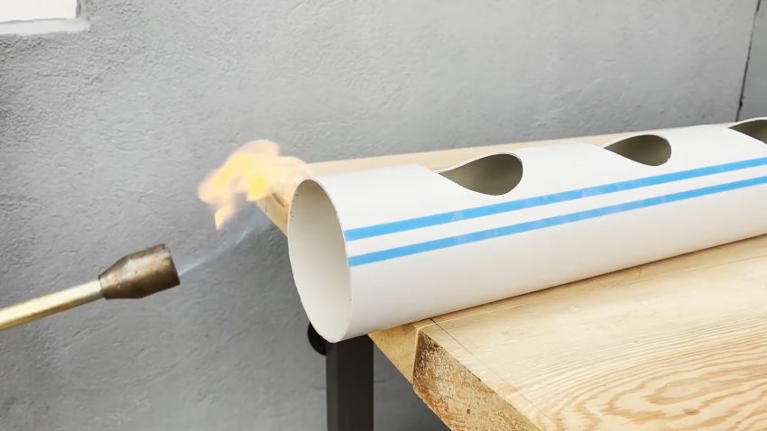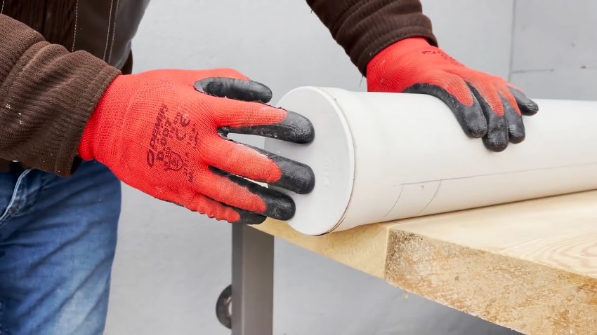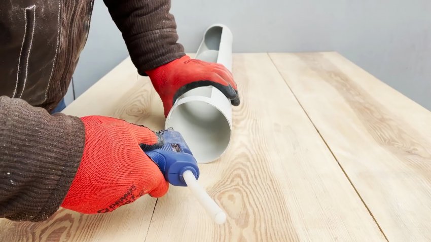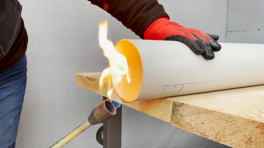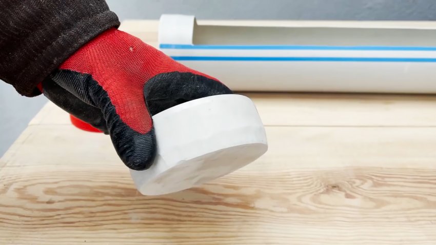 Берем еще 1 метр трубы без раструба, и устанавливаем в нее стандартную заглушку. Для этого край придется разогреть, чтобы пластик стал пластичным.