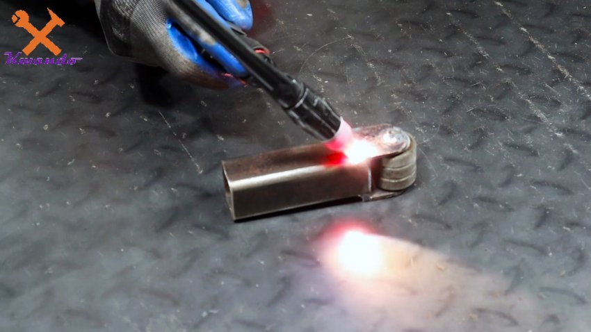 Этот узел приваривается к толкателю из профильной трубы, которая может входить в ранее сделанную направляющую.