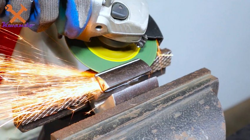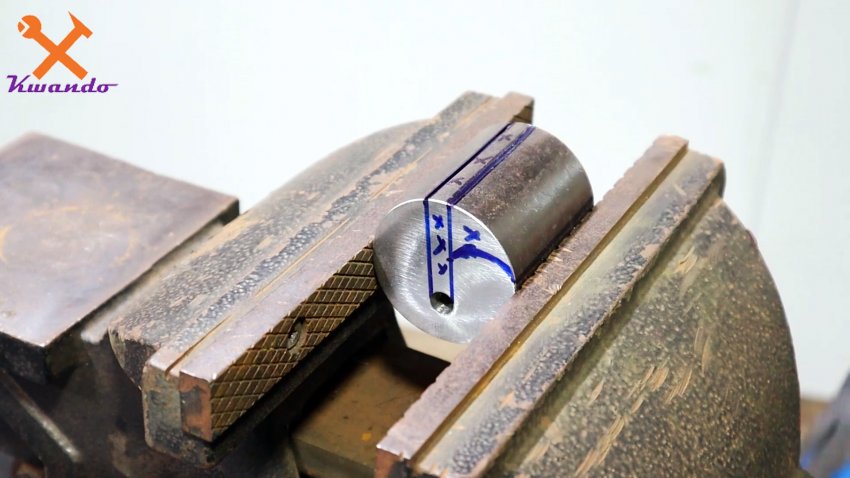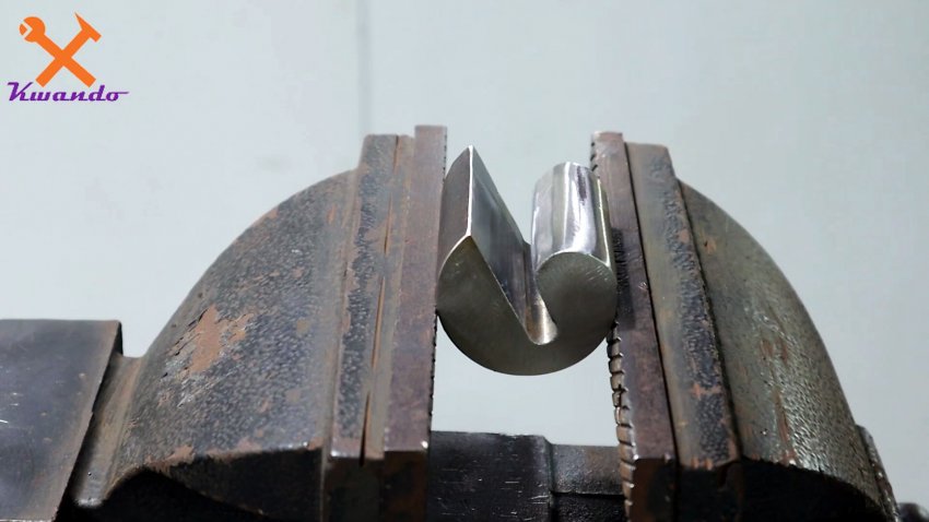 Из цилиндрической болванки вырезается захват для полосы.