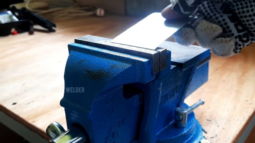Наиболее подходящим способом для соединения тонких металлических листов является сварка с отбортовкой кромок свариваемых деталей. Для этого производим разметку кромок свариваемых заготовок и выполняем отбортовку, используя, например, слесарные тиски.