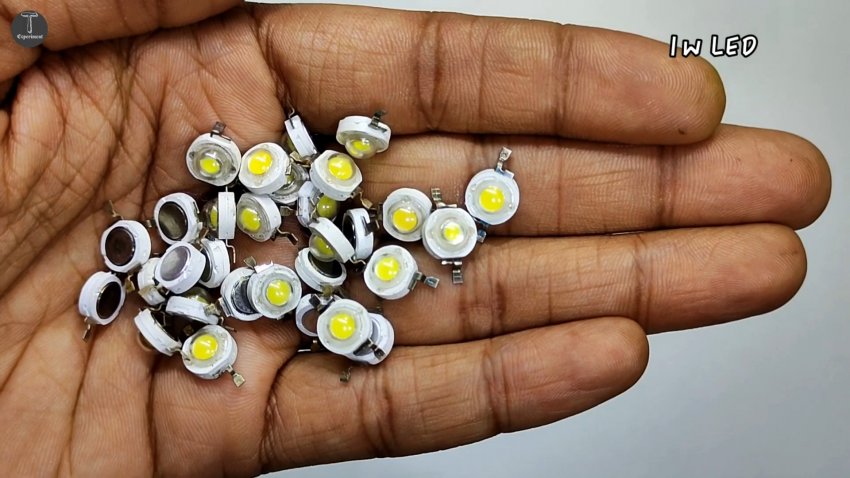В первую очередь необходимо подобрать яркие излучающие светодиоды. В фонарике их будет 12 штук. Значит мощность каждого не должна превышать 1 Вт. И они должны быть корпусными, т.е. не SMD.