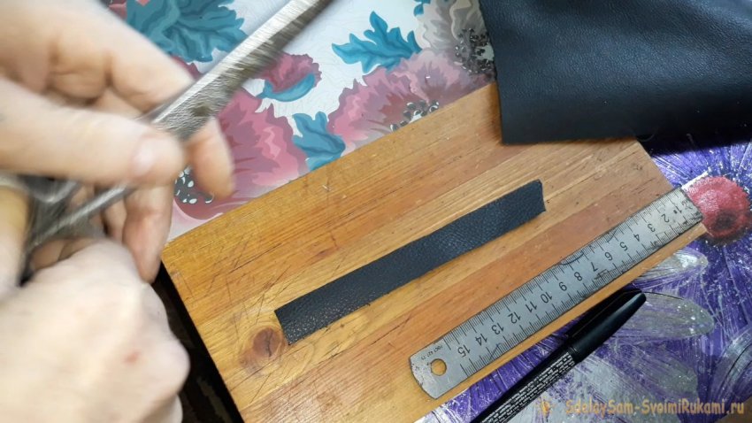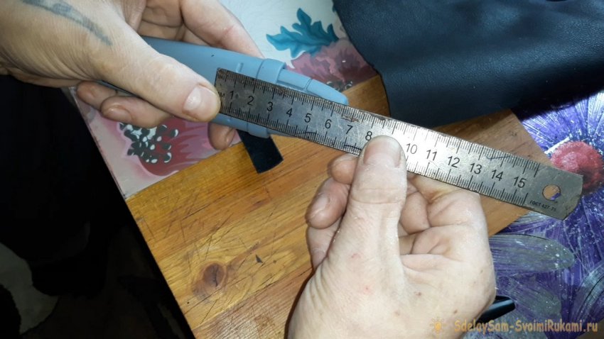 Затем отрежьте полоску кожи в замененное расстояние, шириной в 2,5 сантиметра.