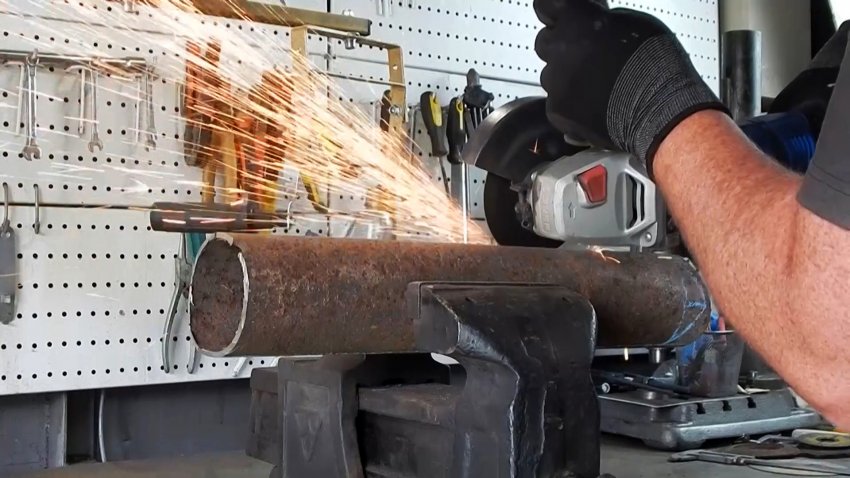 Процесс изготовления траншейной или дренажной лопаты из старых труб