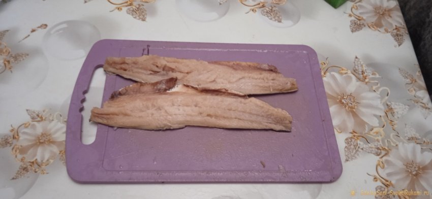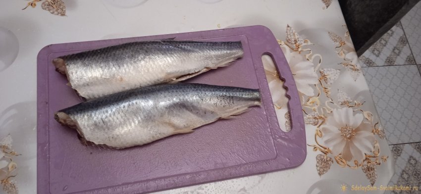 Нам понадобится селедка. У меня свежемороженая. Я ее разморозил без воды и микроволновки. Естественным путем.