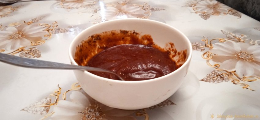 Рекомендую снять кожу. Основной источник неприятного запаха — это кожа и кости. Режем на порционные кусочки. Теперь приготовим маринад. В подходящую емкость отправляем томат, соевый соус, лимонный сок, все травы и специи. Не забываем посолить.
