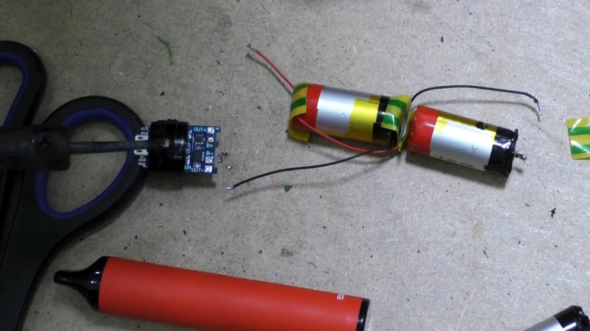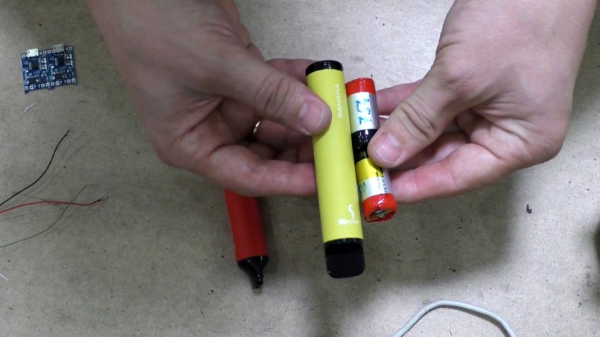 Почему именно из неё? В состав девайса входит аккумулятор ёмкостью до 1000 мА/час. А в корпусе электронной сигареты, который мы будем использовать для переделки, таких поместится два. И еще останется место для расположения схемы и разъёмов.