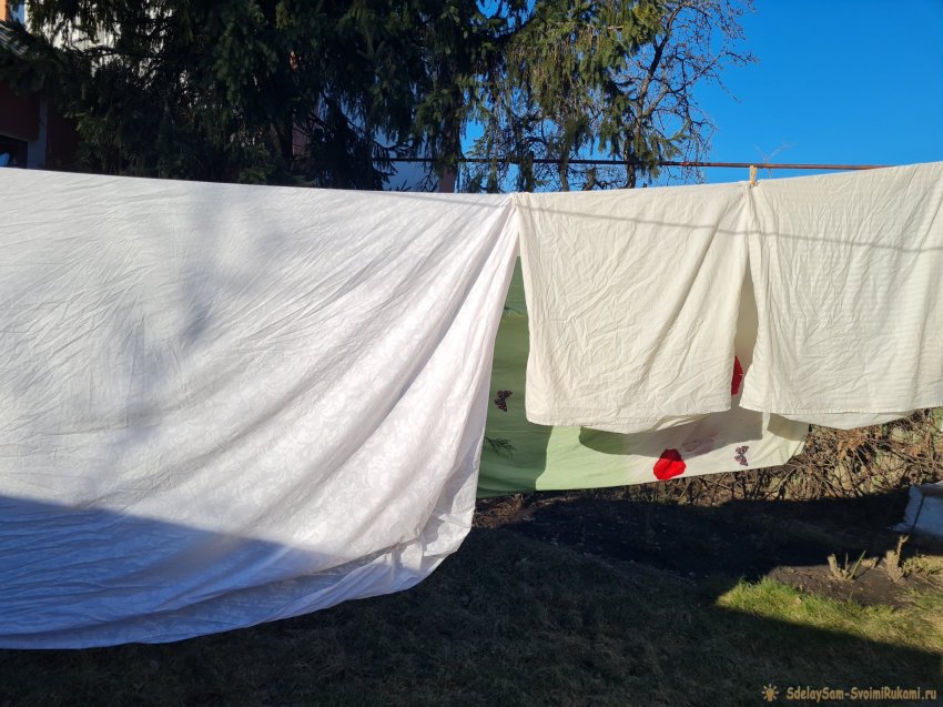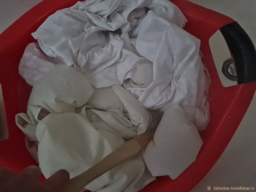 Заливаю полученным раствором грязные наволочки, пододеяльник, простыни.