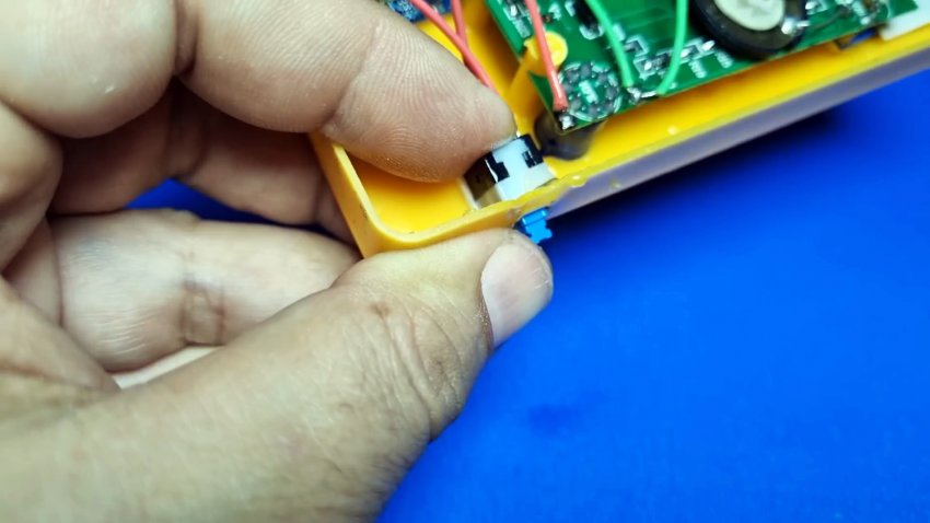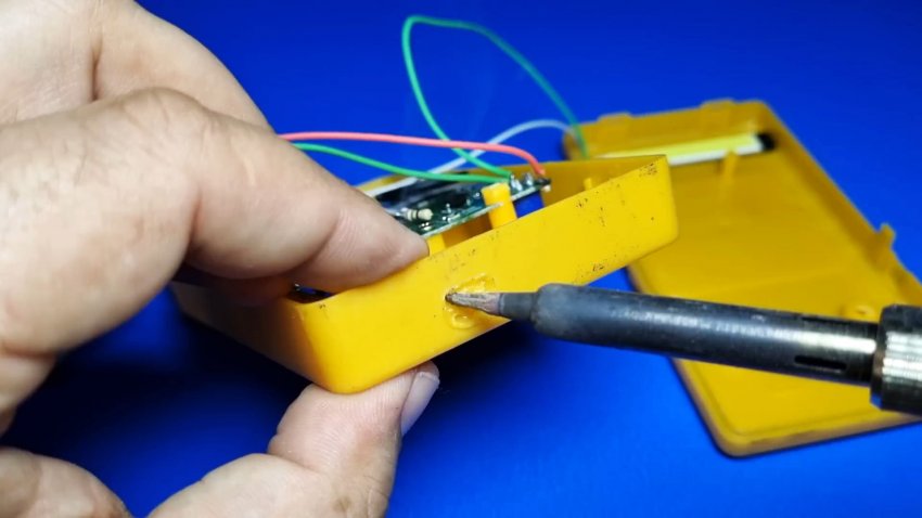 Паяльником делаем отверстия под гнездо зарядки и выключатель.