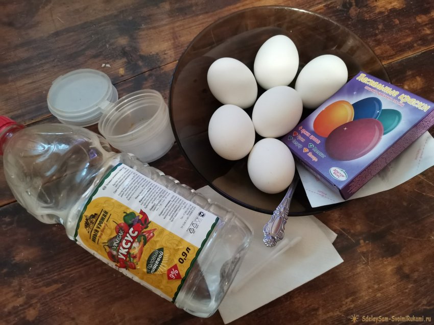 Также потребуются небольшие емкости для разведения краски, ватные палочки, ложка для размешивания и белые простые бумажные салфетки или полотенца.
