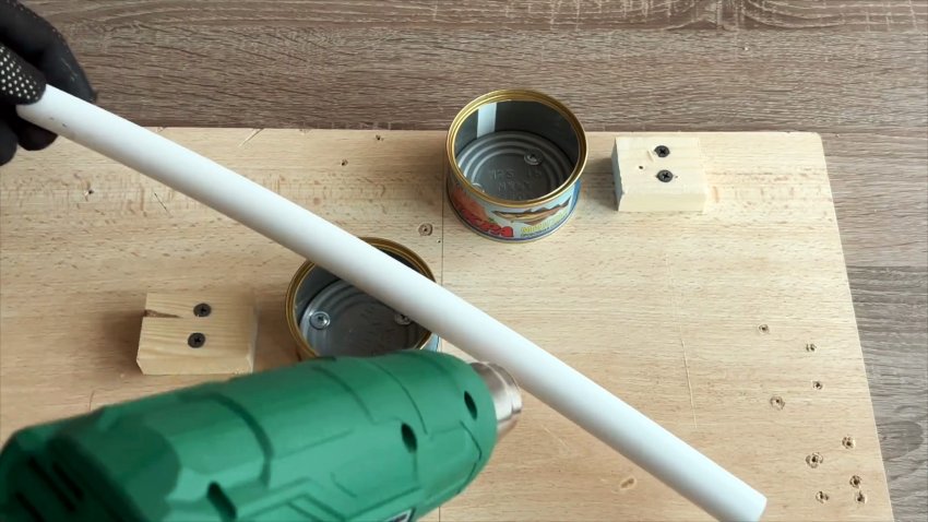 Как легко согнуть пропиленовую трубу с помощью консервных банок и брусков
