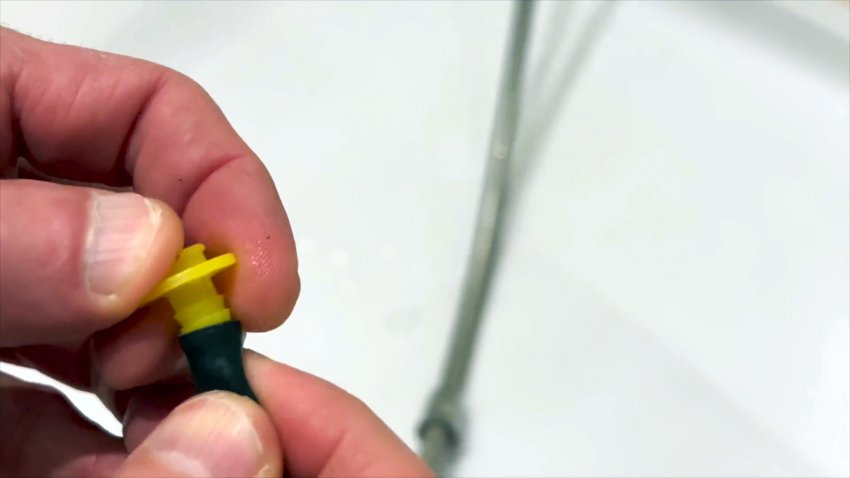 Несколько вытаскиваем резиновую трубку и обнаруживаем на ней порыв. Отрезаем поврежденный участок ножницами, вновь надеваем резиновую трубку на втулку и впрессовываем ее в наружную.