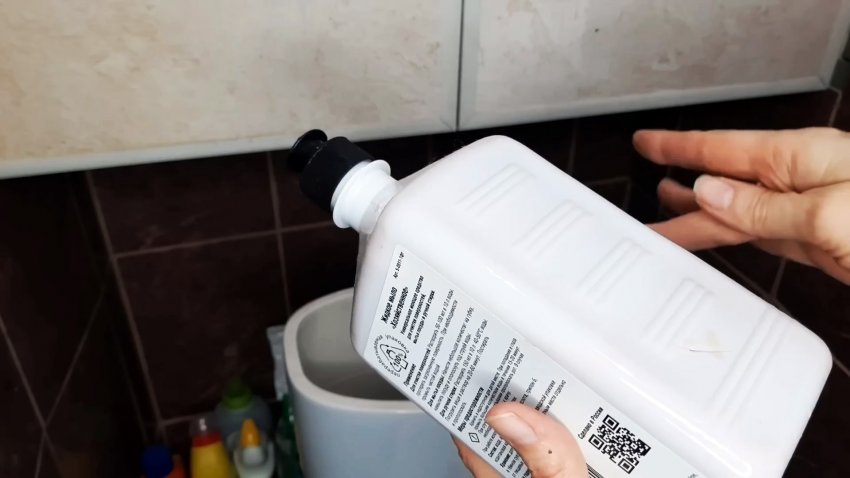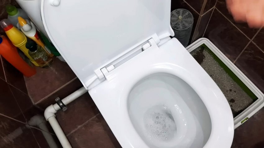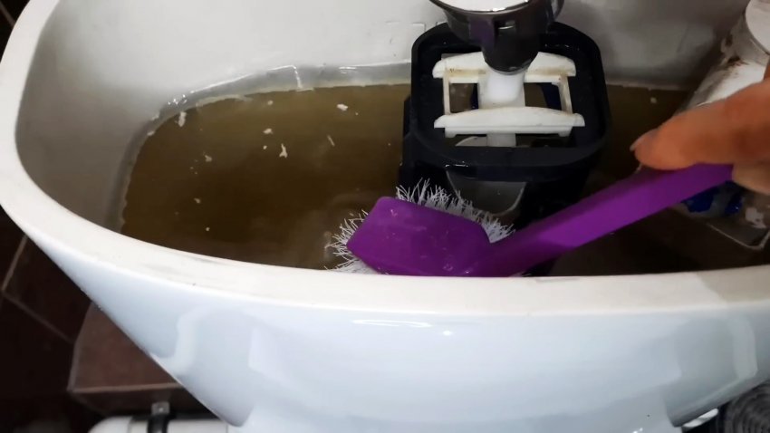 Сливаем водный микст из бачка унитаза, который содержит остатки лимонной кислоты и извести, ржавчину и продукты взаимодействия компонентов.