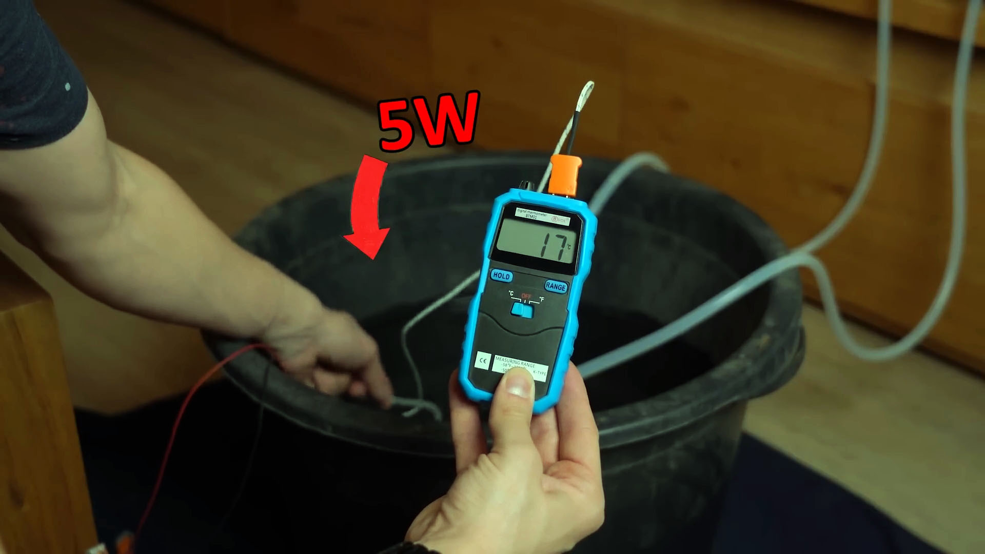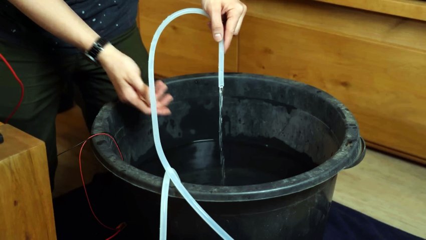 Я наполнил ведро дождевой водой и опустил туда погружной насос на 12 В.