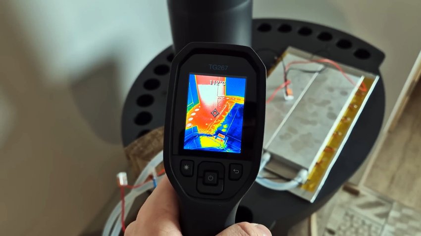 Разница температур между горячей и холодной сторонами составляла около 20 °C. При разнице в 100 °C можно получить 4,8 В и 669 мА. Мой камин нагревается выше 100 °C, а для охлаждения я использую дождевую воду с температурой 9 °C.