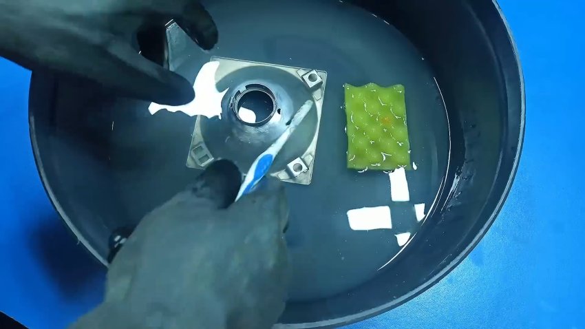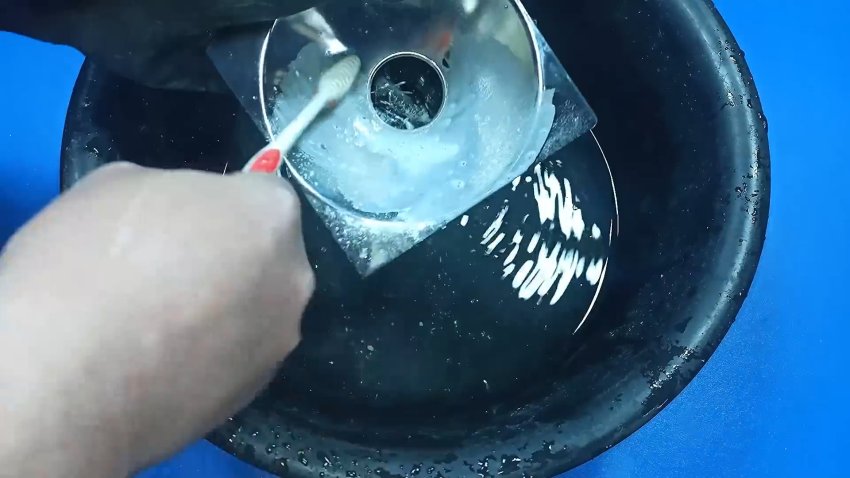 Промоем деталь в щелочи и ополоскиваем водой.