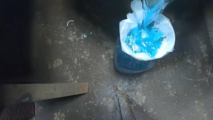 Готовим раствор для никелированная. Смешиваем соль, аккумуляторный электролит и дистиллированную воду.
