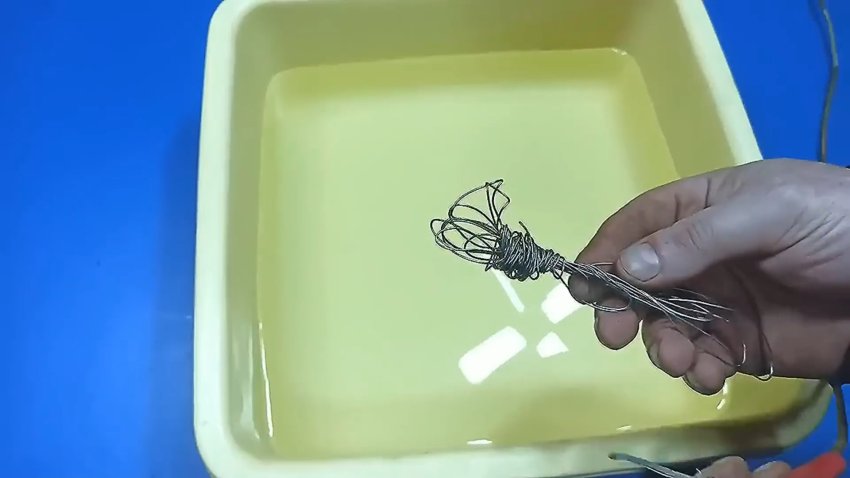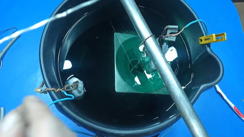 Я использую самодельный трансформатор и стабилизатор напряжения. Прикрепляю нихромовую проволоку к аноду и графитовый элемент к катоду.