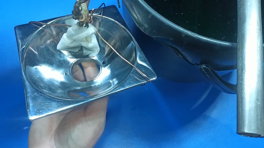 Прикрепляем графит к аноду и автомобильный отражатель к катоду.
