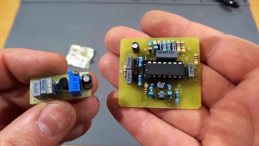 Вместо микросхемы ТЛ074 можно использовать LM324, но я выбрал ТЛ074 из-за лучшей чувствительности. Провод, соединяющий платы, обязательно должен быть экранированным.