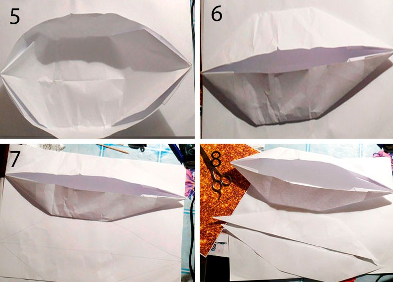 - Вырежьте части чашки и сделайте надрезы в местах сгибания.