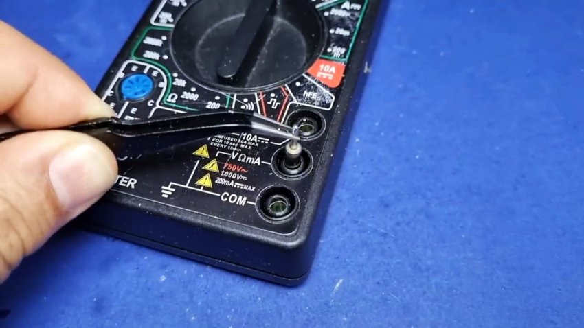 Подключается к мультиметр при помощи клемм от сломанных щупов.