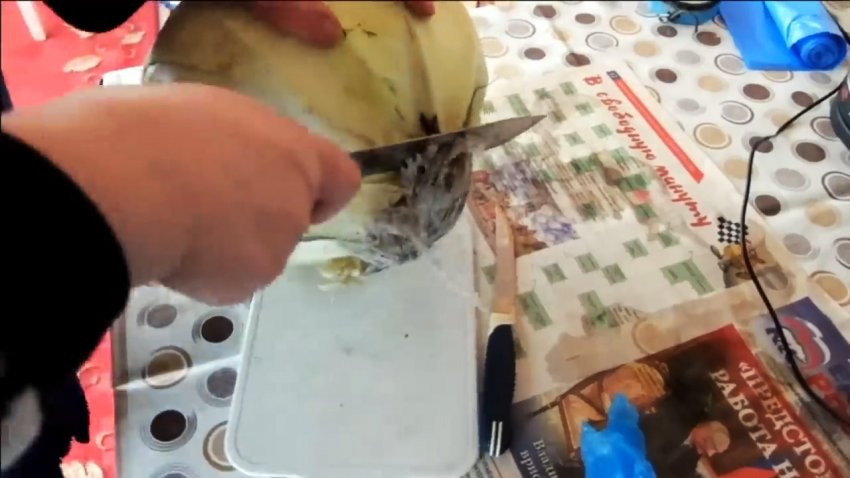 Запаковывать необходимо только сухую капусту. Кочан должен быть сухим. Если принести его осенью с холодной улицы, в тепле он быстро сгниёт.