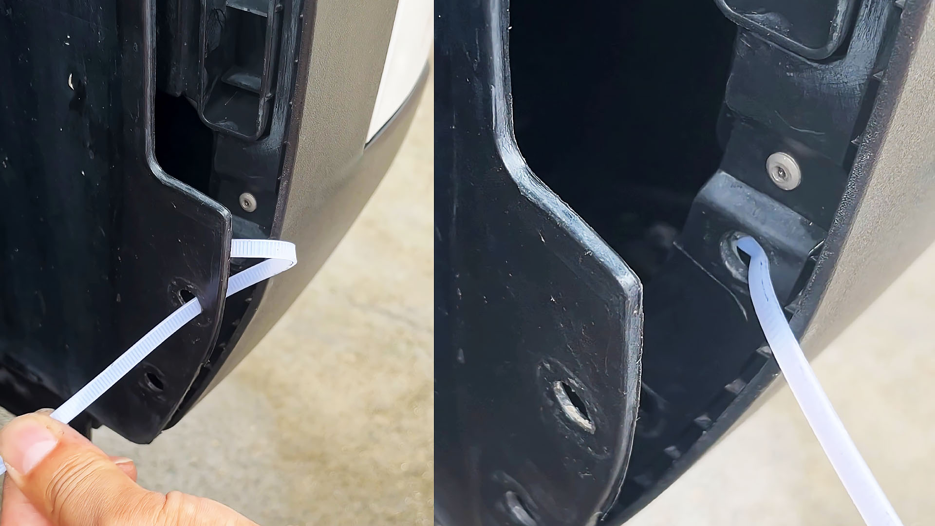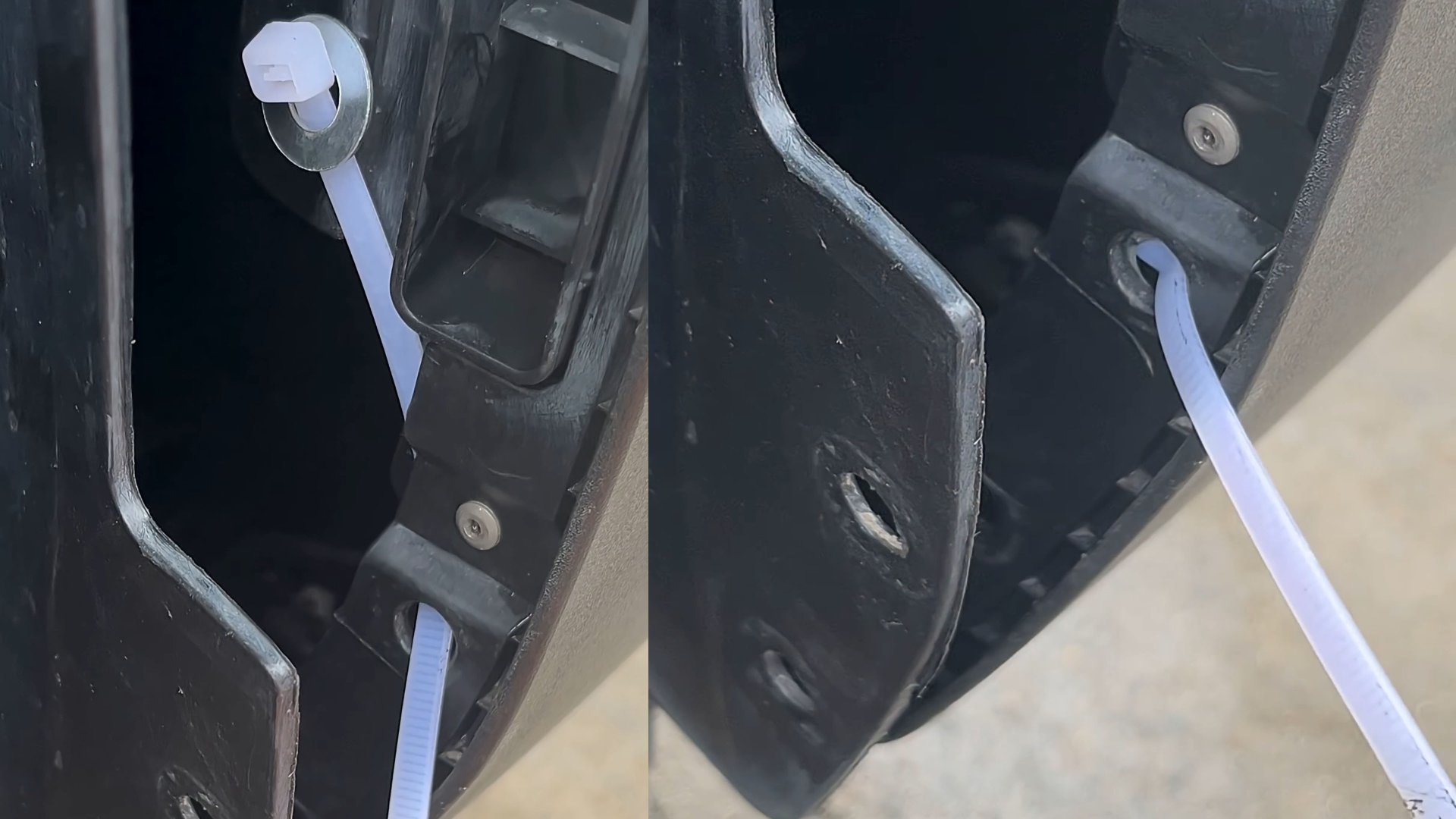 Так чем заменить пластиковую клипсу на авто? Для этого понадобится обычная нейлоновая стяжка- 2 штуки, уверен, что и у вас в гараже найдется таких с десяток.